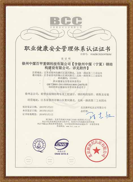 職業(yè)健康安全管理體系認(rèn)證證書(中)