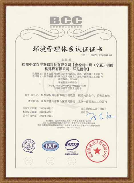 環(huán)境管理體系認(rèn)證證書(中)