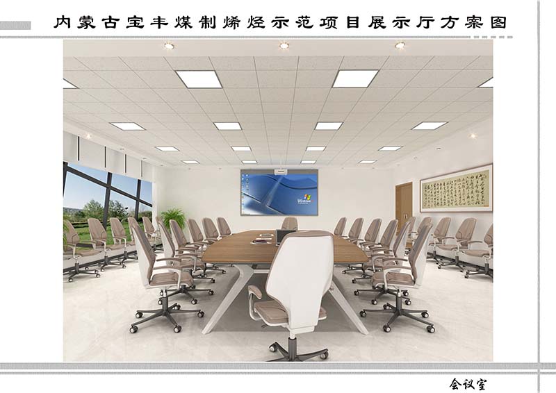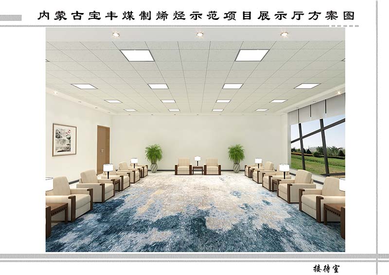 項目為寧夏寶豐能源集團在內蒙古烏審旗圖克鎮投資673億元人民幣占地面積9000畝建設4*100萬噸烯烴項目,是目前國內最大的以煤作為原料來生產甲醇、烯烴、聚乙烯的生產裝置。項目受到了國家和內蒙古自治區的高度重視,為了展示所有的工藝流程平面布置以及寶豐企業的文化。項目所在地須在工程舉行開工典禮前於9月20日前建設一個高檔的展示廳來接待國家和自治區等各級領導的現場參觀和考察。滿足開工典禮的需求。